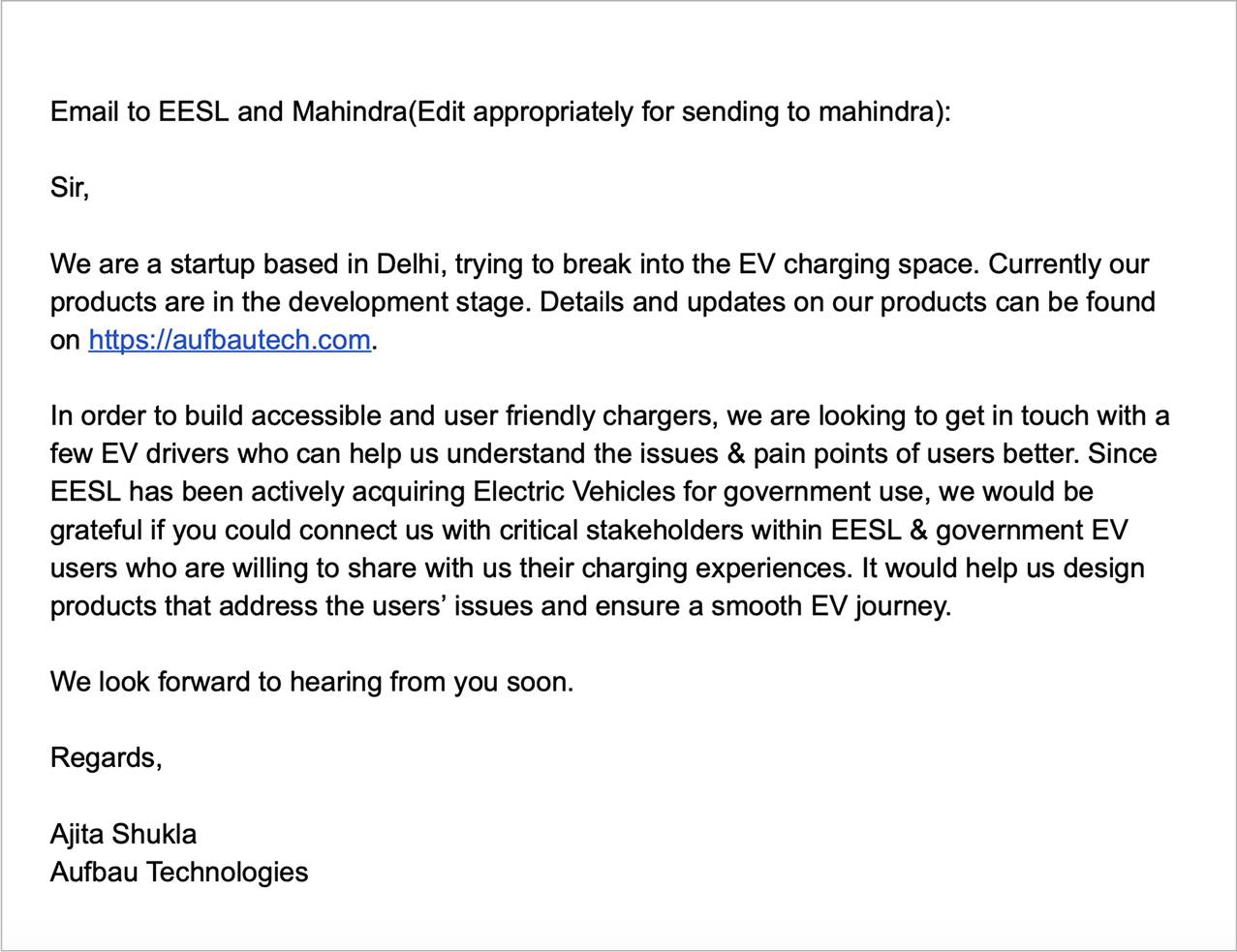 But India lacks charging infrastructure to make this shift to an all-electric mobility. Aufbau Technologies was a startup working to solve this problem of lack of charging infrastructure by developing deeply integrated hardware and software solutions for safe, seamless and simple charging experience for Indians.