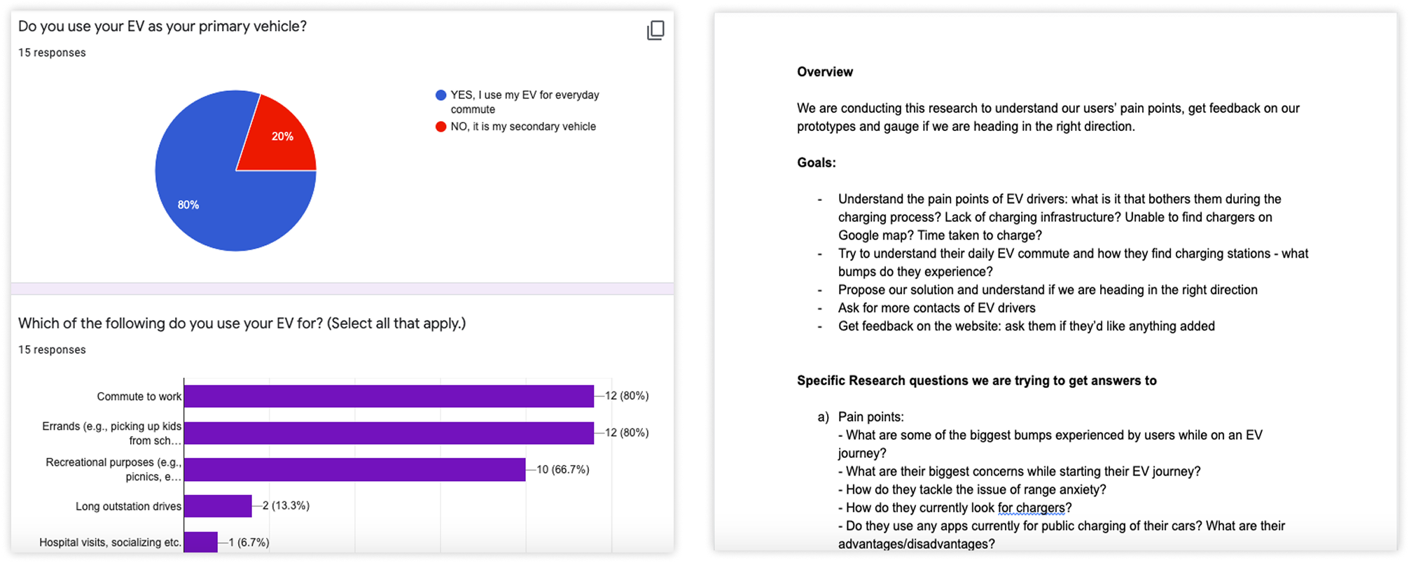 - Finding EV owners willing to do usability testing with us: I had to go into the depths of the internet to find users, because we had no network of EV owners. I wore the hat of a UX researcher to send out emails and LinkedIn messages to about 50 people, finally finding 7 people.